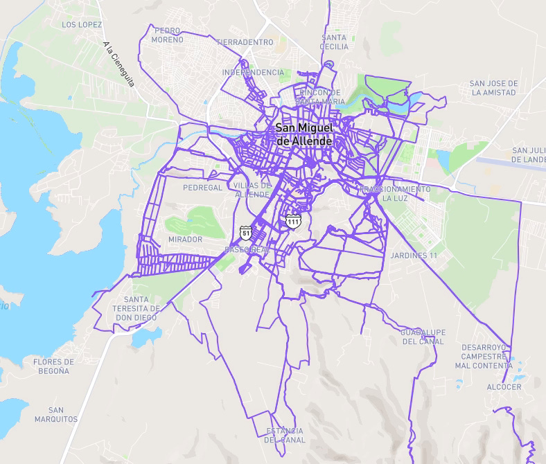 Running every single street in San Miguel de Allende is so much more than a physical challenge. I am out here uncovering history, topography, colonial grids and indigenous desire lines. Plodding my way along dusty, unpaved rights-of-way that the data hasn’t seen fit to record.